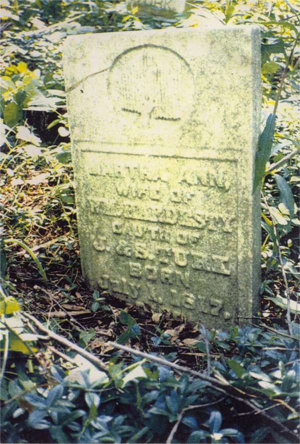We found the Turk Cemetery, had hunted for it last time we were there. It was in terrible shape, wish I had a weed cutter with me, briars were just awful. Two dogs & their houses are located just above the stones. I'd bet that part of the cemetery is located on the property where the dogs are. I was so excited about finding the cemetery, I forgot to ask the woman her name, who lives in the house where the cemetery is located. ... location is along Twp Road about 500 feet South of NW corner of Section 28. 20 acres, est. 1809 (Becky McPeak, May 1997) Note from Roger: This location is where the USGS places the TURK Cemetery. The HARDESTY Cemetery is near the middle of Section 23.